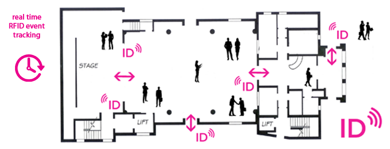 By placing these stations in the lobby and other places, we enable event organizers to see who is in the lecture room and where people hang out during the conference.